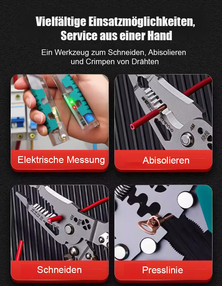 💪 Nicht nur zum Abisolieren: Schneiden, drehen, biegen, trennen, krimpen und mehr—alles in einem Werkzeug.