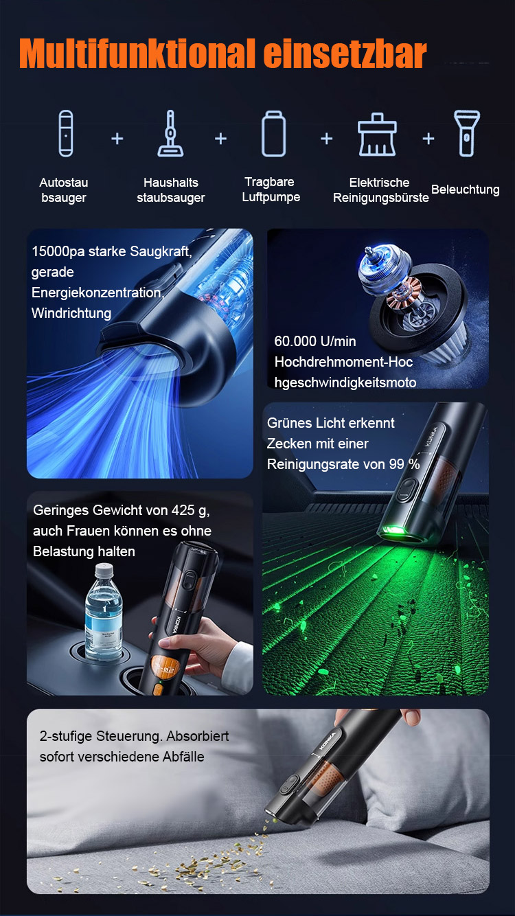 ⚡CleanPro™ 5-in-1 Saugen & Blasen - 3 Sekunden für staubfreie Autos, 3 Minuten für ein wie-neu-Innenraum! Unter 500g, über 90 Tage Nutzung!