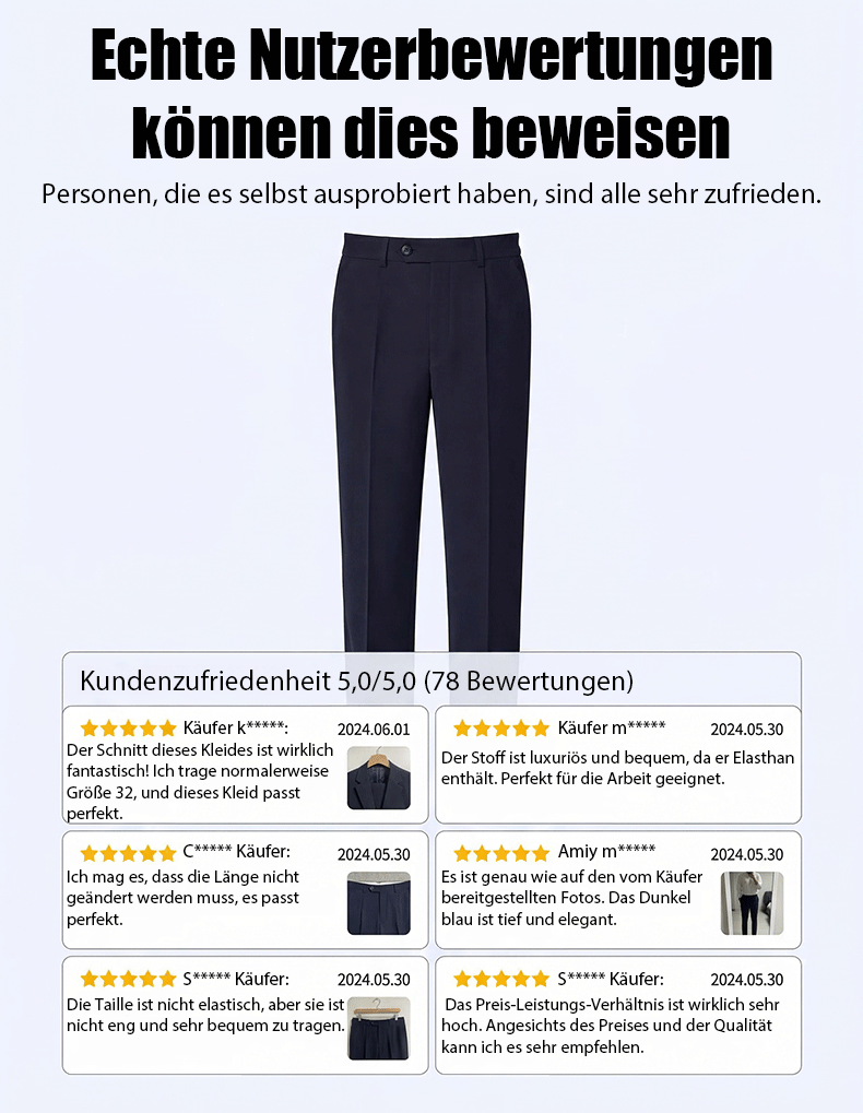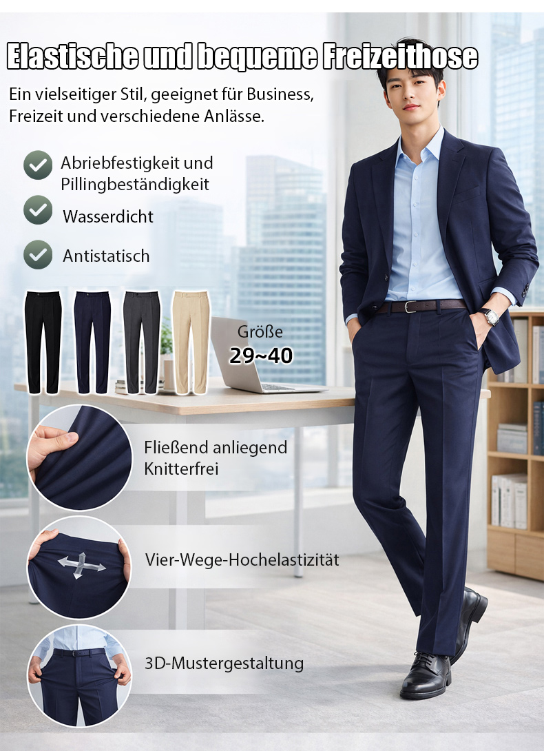 【Bügelfrei & Elegant】🏅FlexFit™ - 4-Wege-Stretch für maximale Bewegungsfreiheit!👖Reißfest und formstabil bei jeder Bewegung!